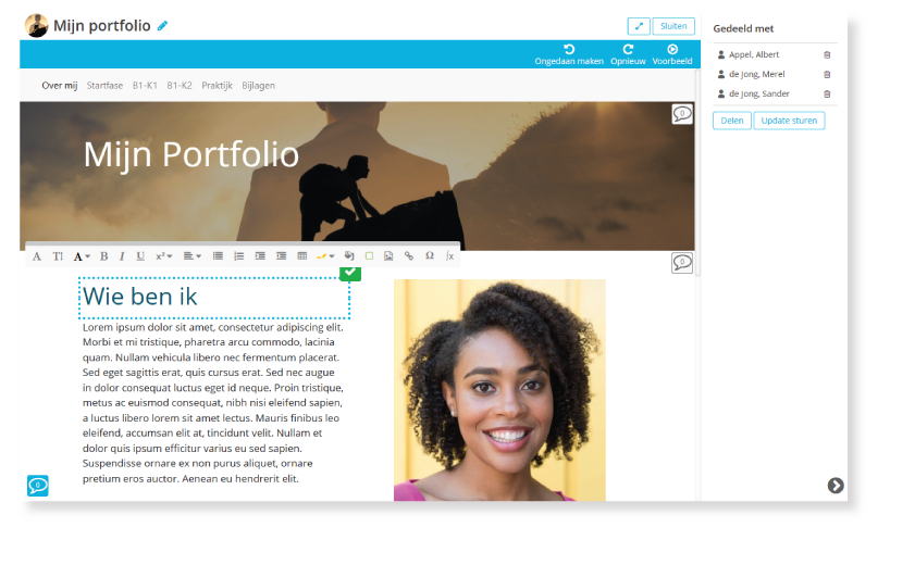 Onze portfolio- en coachingtools zijn zorgvuldig ontworpen om een studentgerichte benadering te ondersteunen. Ze stellen studenten in staat om hun voortgang te documenteren, hun prestaties te reflecteren en persoonlijke doelen te stellen. Dit verhoogt niet alleen hun betrokkenheid, maar ontwikkelt ook essentiële vaardigheden zoals zelfevaluatie en kritisch denken.
