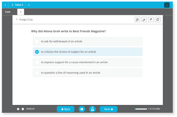 Ons DXP bevat een bewezen digitale toetsensuite (Exam) die geliefd is bij makers. Wanneer een eenvoudige quiz niet voldoende is, laat Exam studenten digitale toetsen afleggen met een breed scala aan vraagtypen. Educators kunnen de ingeleverde toetsen beoordelen en analyseren.